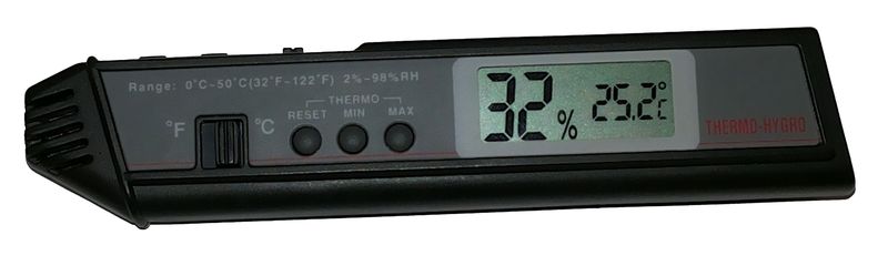 Прибор, позволяющий измерить температуру и влажность окружающего воздуха.
