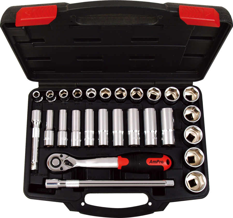 Приобрести T45530 Набор головок и аксессуаров 1/2", 27 предметов от компании AmPro (Тайвань) из раздела Наборы инструмента в пластиковых кейсах по цене 5 226 рублей.