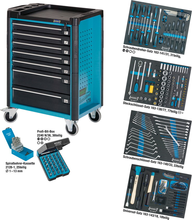Hazet Тележка инструментальная 7 ящиков,синяя, с набором инструментов 220 предметов