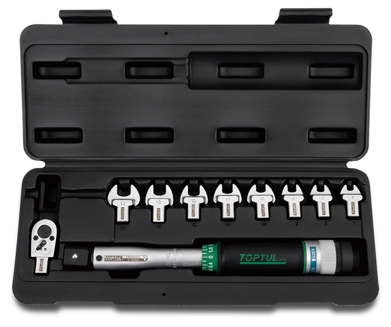 Ключ динамометрический 9x12мм 6-30 Нм с рожковыми насадками 7-14 мм 10 предметов TOPTUL GAAI1001 купить в Саратове и других городах России