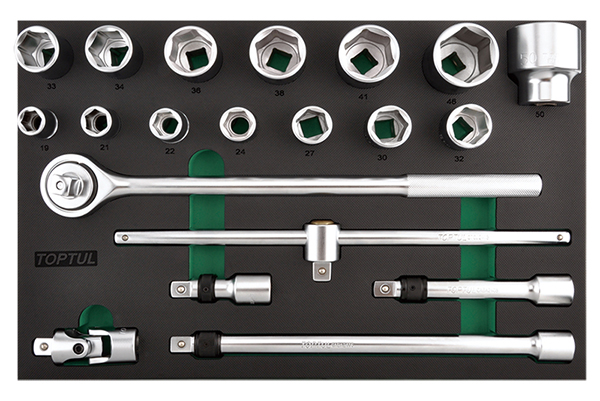 Приобрести Набор головок и аксессуаров 3/4" 6-гранных 19-50 мм, 20 предметов в мягком ложементе (D) TOPTUL GVD2010 от компании Toptul (Тайвань) из раздела Торцевые головки по цене 29 507 рублей.