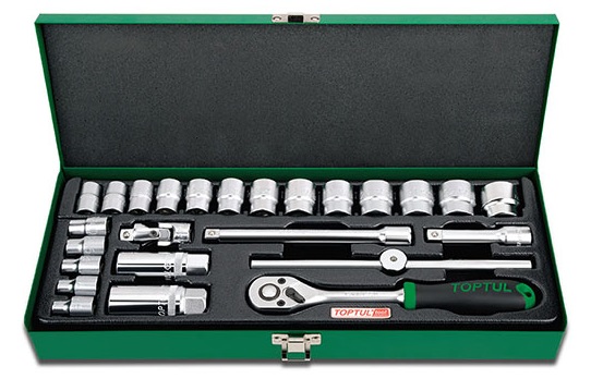 Набор головок и аксессуаров 3/8" 12-гранных 6-24 мм, 25 предметов в метал. кейсе TOPTUL GCAD2504 купить в Саратове и других городах России