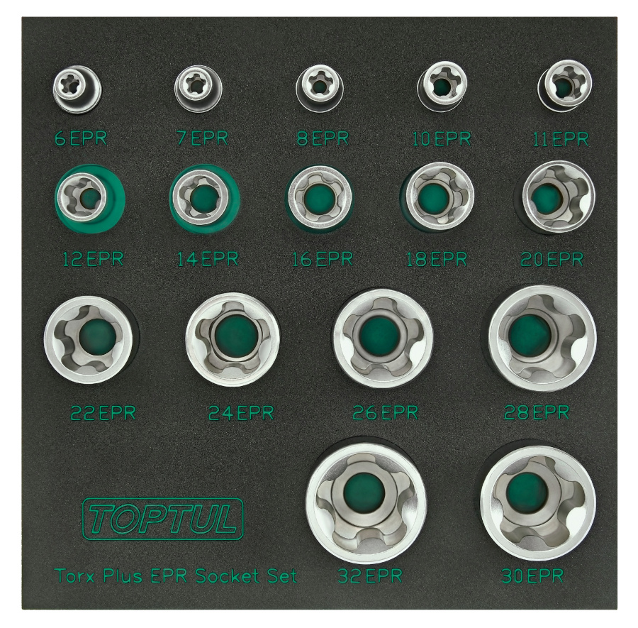Набор торцевых головок TORX Plus EPR 1/4",3/8",1/2" 5-ти лучевые, 6EPR-32EPR, 16 пр. на ложементе TOPTUL GABF1601 купить в Саратове и других городах России